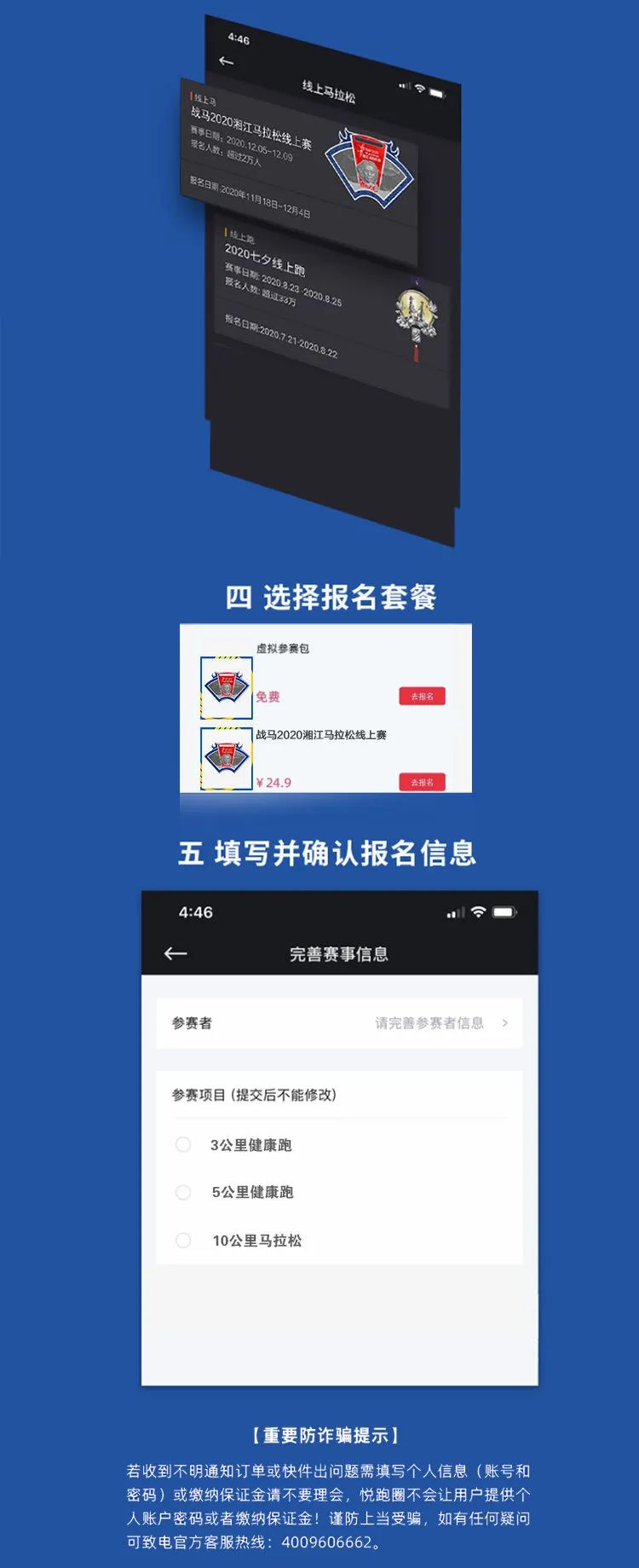 ? 報名途徑:選手們需登錄線上跑官方指定跑步類APP—“悅跑圈”-點擊「廣場」-「線上馬拉松」入口,選擇戰(zhàn)馬2020湘江馬拉松線上賽